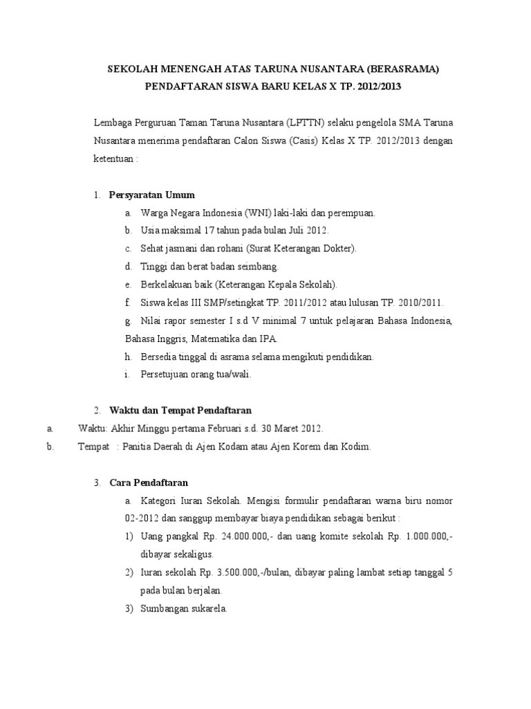 Sesuai hasil kajian dan studi kelayakan pembangunan sekolah unggulan sma taruna kasuari nusantara di papua barat dinyatakan . Artikel kali ini akan membahas lengkap tentang sma taruna nusantara, semoga kalian semua lulus seleksi calon kadet pemuda indonesia. "benar pak, ada anak didik kita yang mendaftar ke sma taruna nusantara magelang ada yang lulus seleksi akademik," ucap sekata sembiring. Jika dibandingkan tahun akademik sebelumnya, biaya sma taruna nusantara tahun ajaran 2021/2022 belum mengalami kenaikan. Kontribusi khusus (tambahan iuran kk 125 juta).
